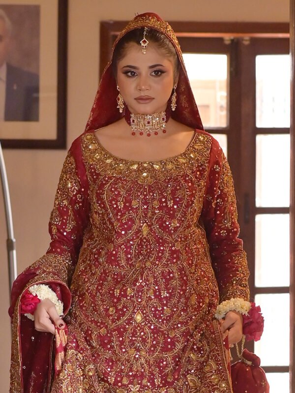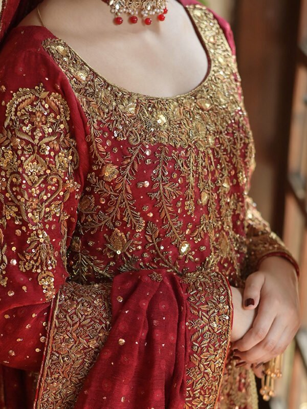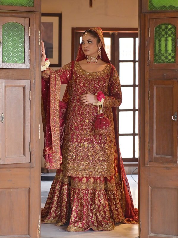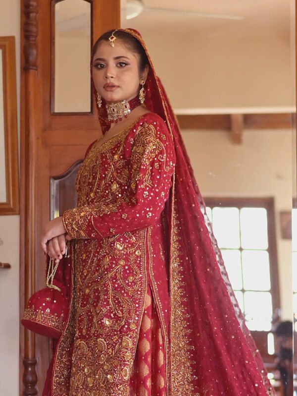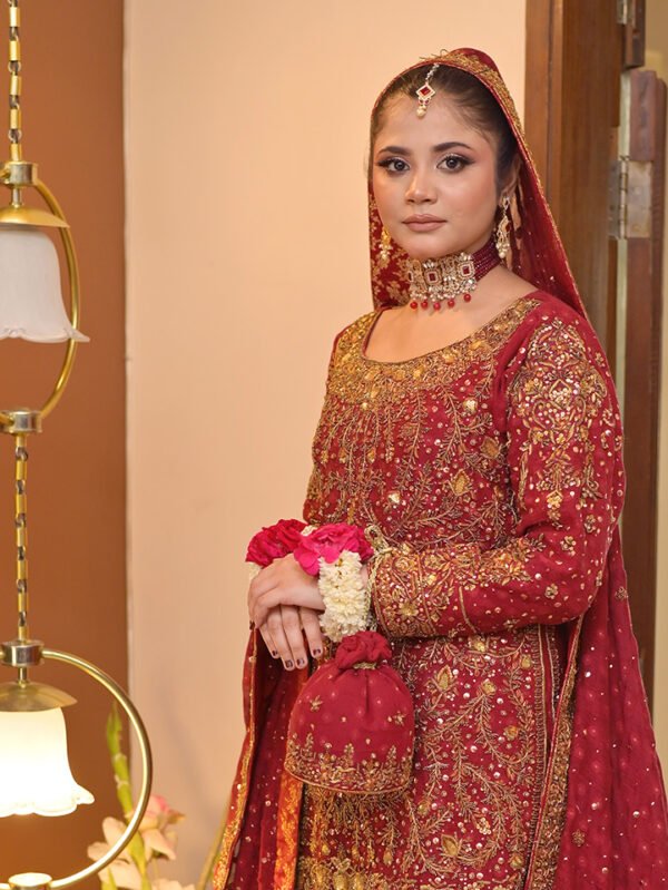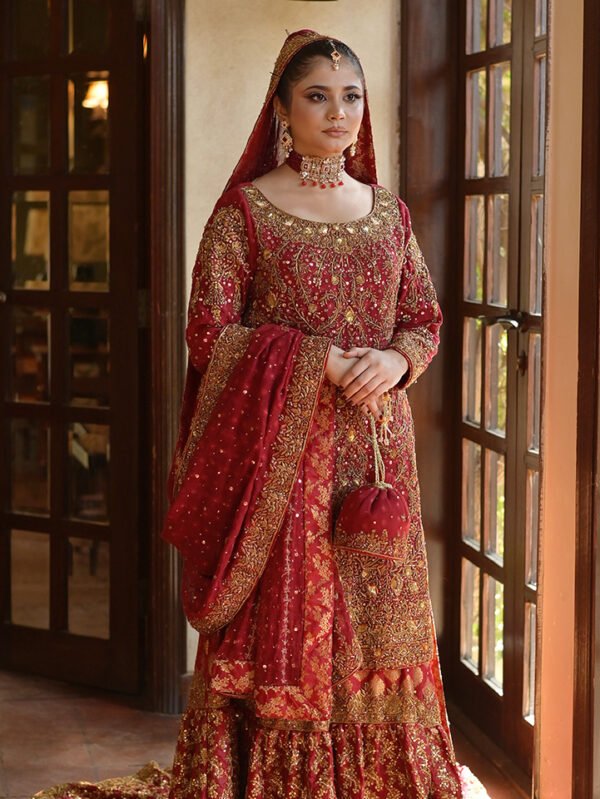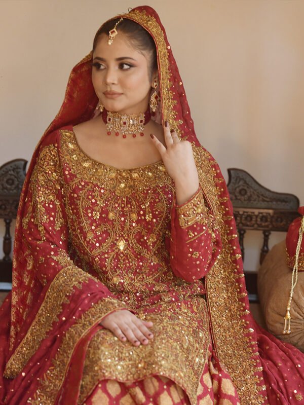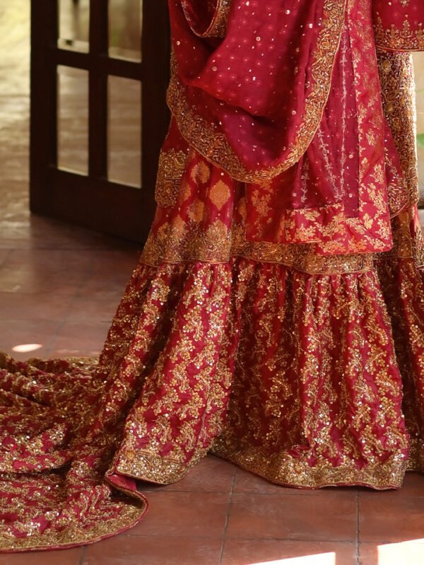 Unveil Your Inner Radiance ✨   Introducing our exquisite SK2501 Rajsi - Bridal Trail Outfit – a breathtaking lengha ensemble that embodies luxury and timeless elegance. Crafted with intricate hand embroidery on delicate khadi net and banarasi fabric, this masterpiece is designed to captivate and enchant on your special day.   What’s Included? âś” Shirt âś” Farshi Lehnga with Trail âś” Dupatta (5 Gaz) âś” Potli   Each bridal outfit is made to order, ensuring a perfect fit and a personalized touch. Please allow 12 to 14 weeks for the meticulous craftsmanship and hand embroidery that make this ensemble truly exceptional. đź’« Make your wedding unforgettable with a look that radiates elegance! đź’«